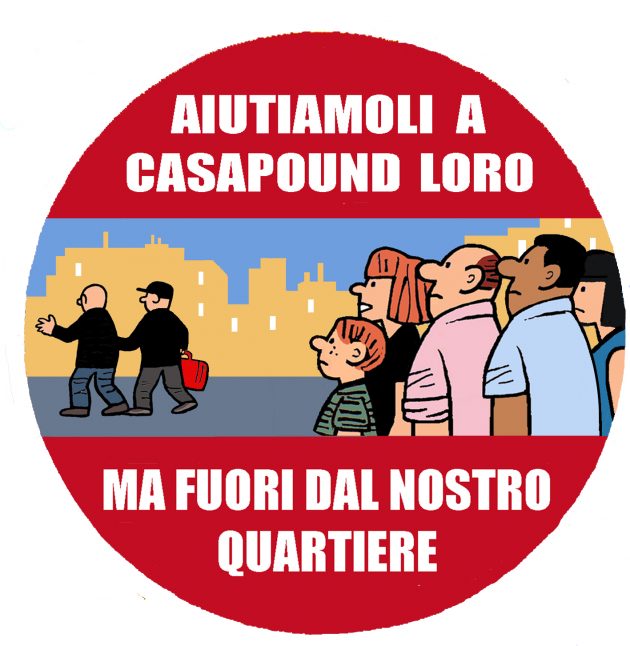 Lunedì 16 luglio una fiaccolata attraverserà il quartiere per ribadire un “No” collettivo al neofascismo e la campagna ha coinvolto anche una firma nazionale della satira: Danilo Maramotti, l’ex-vignettista dell’Unità, di Linus e del Corriere Economia [sopra le sue vignette]. Mentre “Marionecomix”, il vignettista ultragrillino, partecipava alla presentazione in Parlamento di un libro ‘sovranista’, accanto a Simone di Di Stefano, vicepresidente di CasaPound e a Luca Marsella (il candidato che a Ostia apparve in una foto con gli Spada), Danilo Maramotti volantinava per le strade di Villapiana dando all’ ‘intellighenzia’ savonese una grande lezione di umiltà e di militanza democratica.