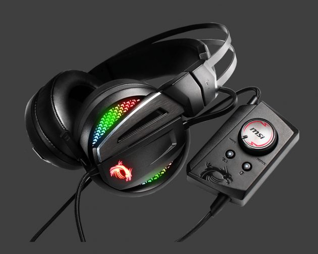 Invece di controlli e pulsanti sui padiglioni delle cuffie, per le sue cuffie MSI ha optato per un controller posizionato sul cavo, pensato per stare sulla scrivania, in cui è possibile trovare due pulsanti per attivare e disattivare rispettivamente il 7.1 virtuale e il Mute del microfono, ed una ghiera per regolare il volume, rendendo i controlli intuitivi ed a portata d’occhio.
