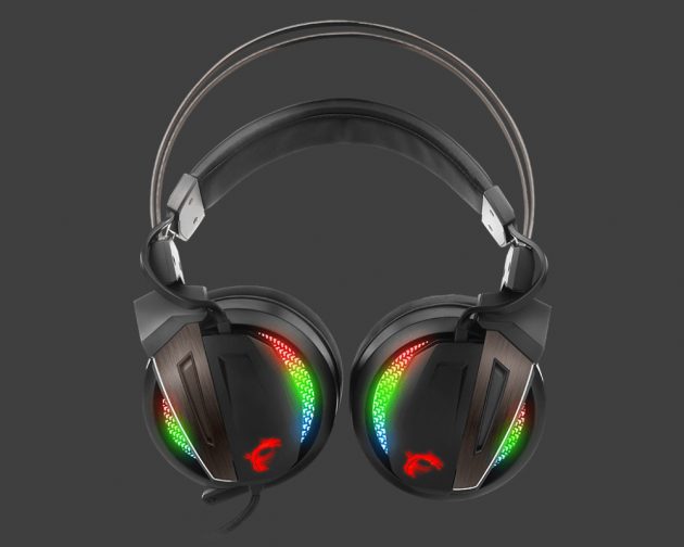 Caratterizzate da padiglioni rotondi, un doppio archetto esterno in acciaio strutturale ed uno interno morbido di sostegno, le GH70 si presentano con un look che mette in mostra il loro DNA gaming senza però cadere negli eccessi, vedendo sulla parte esterna di entrambi i padiglioni due aree con una trama “a freccia” retroilluminate tramite led RGB divise dai supporti bicolore (nero/acciaio spazzolato) . Ottimo il comfort durante l’uso, grazie all’archetto interno morbido autoregolante (è dotato di supporti elasticizzati) che sostiene la cuffia sopra la testa, e dei cuscinetti morbidi e spessi in grado, nonostante la forma tonda, di non far sentire eccessivamente il peso delle cuffie sulle orecchie, con la possibilità di optare tra quelli ricoperti in pelle e quelli in tessuto (entrambe le versioni sono presenti nella confezione).