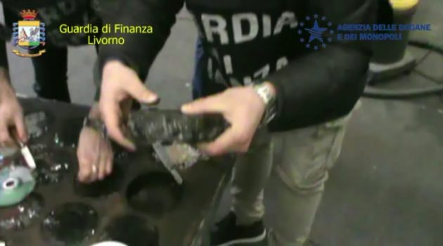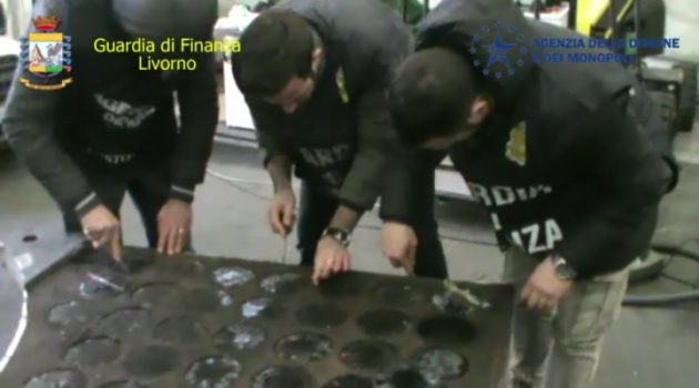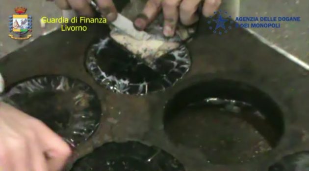 I narcotrafficanti erano riusciti a nascondere i panetti di droga all’interno di due supporti di metallo di cui era dotato il container che, ufficialmente, avrebbe dovuto portare una partita di trota salmonata. La provenienza cilena del carico, però, ha fatto insospettire gli uomini dell’Agenzia delle Dogane di Livorno che, insieme ai militari della Gdf, hanno perquisito la cisterna una volta arrivata a destinazione nel porto toscano lo scorso 30 gennaio. La “scannerizzazione” del carico ha individuato 160 panetti da 50 grammi ciascuno a forma circolare proprio all’interno delle intercapedini di ferro e per estrarle ci sono voluti tre giorni.