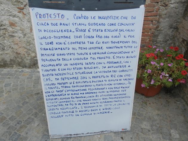 Riace ha bisogno di versamenti immediati sul conto corrente aperto da Recosol. E sarebbe anche utile un passaggio diretto di visitatori e turisti in questo mese di agosto, magari accompagnato da piccoli acquisti all’artigianato dei profughi.