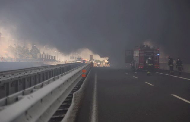 Nella zona, molto vicina ai centri abitati, sono anche scoppiati i vetri di molte case. Dopo tre ore le fiamme sono state domate: i soccorritori sono rimasti sul posto per cercare di capire se ci sono altre vittime ancora non individuate. La dinamica dell’incidente è stata chiarita dal video delle telecamere dell’autostrada (guarda): l’autista dell’autocisterna non ha rallentato mentre si stava formando una coda dovuta al traffico intenso: ha quindi centrato in pieno il camion che lo precedeva. I due mezzi si sono immediatamente incendiati e sono esplosi dopo qualche minuto. Ignoti per il momento i motivi che hanno portato l’autista della cisterna a non arrestare il suo veicolo.