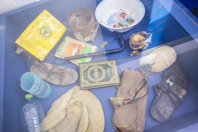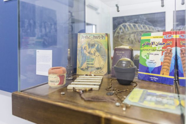 Vi si arriva attraverso un’ideale cammino attraverso le storie di chi ha tentato la traversata e non ce l’ha fatta. Un rosario. Una guida dell’Italia in lingua araba, la torre di Pisa in copertina. Un sandalo. Gli oggetti recuperati dal mare, dai barconi o sul fondo di un gommone sono lì a parlare di sogni e speranze, ma soprattutto di persone, di esseri umani che nel migliore dei casi su questa sponda del Mediterraneo non sono che numeri nelle statistiche del ministero dell’Interno, che tiene il conto degli arrivi lungo la rotta del Mediterraneo centrale. Nel peggiore, sono il nemico, l’invasore, il capro espiatorio cui addossare i mali del Paese.