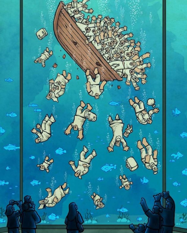 Nelle sale del Museo della fiducia – che si è arricchita quest’anno dell’originale della famosissima illustrazione firmata dall’artista iraniano Alireza Pakdel, che raffigura le vittime di un naufragio mentre precipitano verso il fondo del mare – le loro storie intersecano quelle degli emigrati e sfollati italiani raccontati attraverso i reperti forniti dall’Associazione Nazionale Vittime Civili di Guerra, in un tentativo di distruggere le barriere fisiche e mentali e un mezzo per coltivare semi di umanità, empatia e solidarietà.