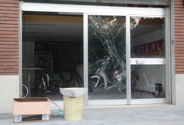 Il cielo è ancora velato di grigio, spazzato di continuo dal rumore degli elicotteri che continuano a gettare l’acqua del fiume Reno sulle fiamme. Per strada, pezzi di gomma carbonizzati. Sui muri dei palazzi, a una manciata di metri dal cavalcavia, non c’è un vetro intatto, così come sono quasi tutte frantumate le vetrine dei pochi negozi ancora aperti in paese. Chi aveva le tapparelle abbassate, necessaria difesa dal caldo di agosto, ora se le ritrova accartocciate, in un modo che fa immaginare l’intensità dell’esplosione, capace di devastare un intero isolato e farsi udire in mezza provincia bolognese.