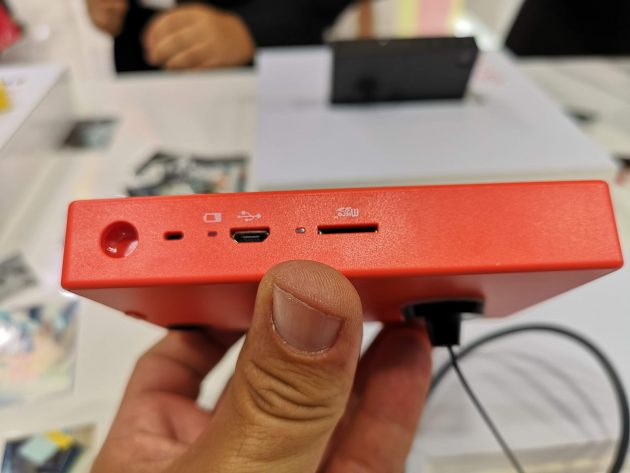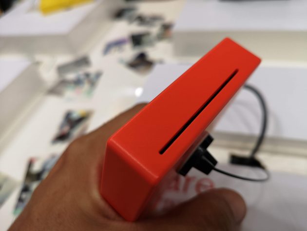 Sul lato opposto della macchina c’è la fessura da dove esce la stampa, mentre il pannello posteriore ha un piccolo sportellino per ricaricare la carta quando è finita. Sotto, invece, una porta MicroUSB per caricare la batteria e uno slot per scheda MicroSD. Se la scheda è presente, la macchina salva le foto oltre che stamparle; oppure le salva e basta nel caso la carta sia finita.