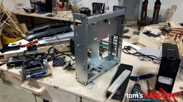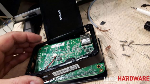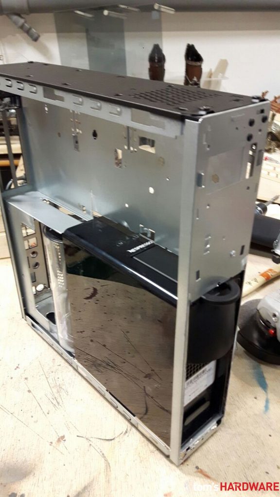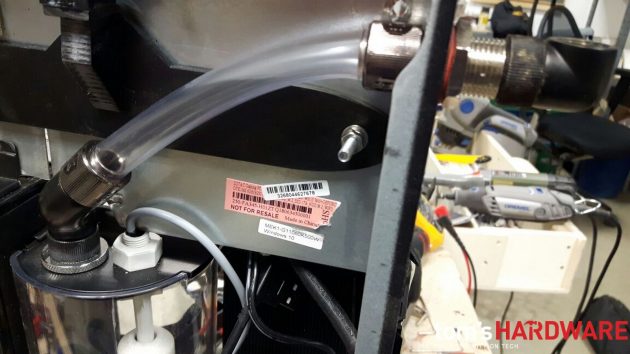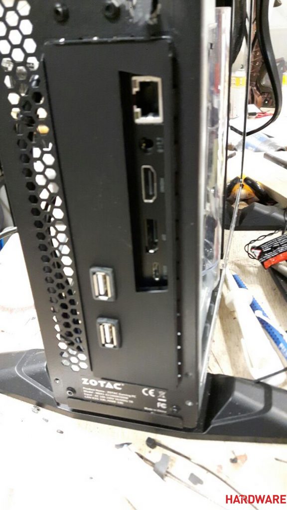 Abbas ha dunque svuotato il case di tutto il suo contenuto, scheda madre, scheda video, alimentatore e così via. Poi ha apportato diverse modifiche sia al case sia alla macchina del caffè, ottenendo una perfetta integrazione tra i due prodotti. Infine, ha inserito dentro al case un microcomputer Zotac Mini Pi335. Si tratta di un computer davvero piccolissimo, tascabile in effetti, ma capace di gestire senza problemi il comune lavoro da ufficio. Un paio di connessioni aggiuntive, e il lavoro è finito.