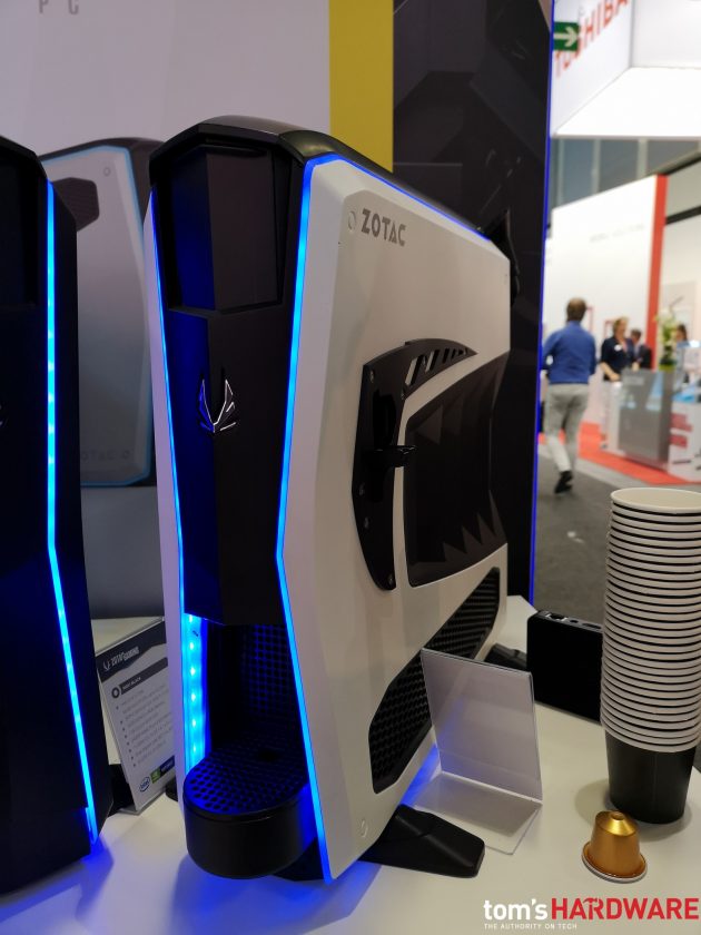 L’idea è venuta a Maciej Wieczorek, responsabile marketing di Zotac per l’Europa. “Stavo cercando una macchina per il caffè”, racconta, “e ne ho trovata una particolarmente sottile. E ho pensato che somigliava parecchio al Mek, uno dei nostri ultimi modelli”.