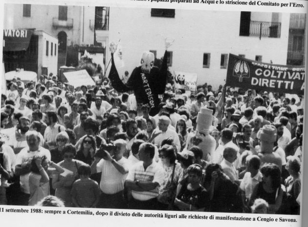 Ma la storia dell’Acna e delle lotte che la caratterizzarono è anche la storia emblematica della violenza del potere costituito, in generale. Che sia padronato, che sia politica, che sia magistratura, che siano forze dell’ordine. E, da questo punto di vista (ben intesi, solo da questo) richiama mille altre lotte combattute contro le ingiustizie (un po’ come la locomotiva di Guccini), come, ai giorni nostri, quella contro la Tav in val di Susa. Così come i morti del crollo del ponte Morandi mi sembra che richiamino sempre il triste accordo fra capitale e politica. È la storia che si ripete, non propriamente sempre uguale, anche se sempre uguali sono gli interessi comuni e la morte che ne consegue. Quella degli operai, quella delle trote, quella delle falde acquifere.