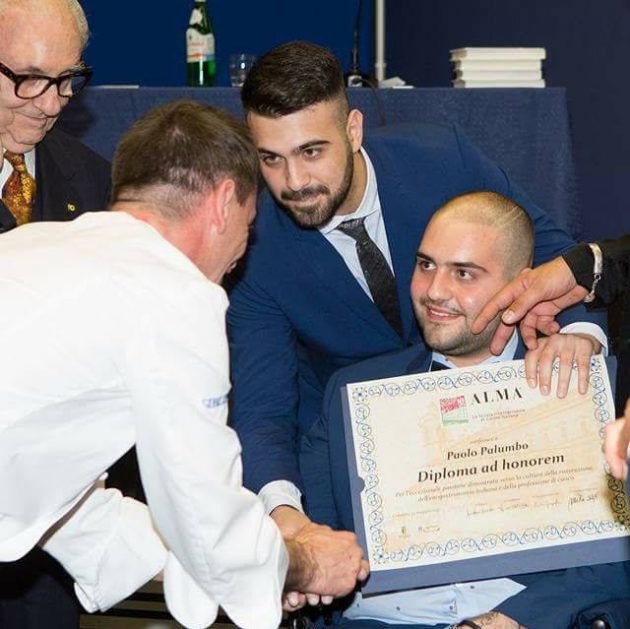 La passione di Paolo per la cucina viene da molto, molto lontano. Prima con i lavori nelle ville di Porto Cervo, poi con un’esperienza a Bucarest e infine con la decisione di iscriversi all’Alma, l’accademia della cucina fondata da Gualtiero Marchesi. Prima dei test gli si è bloccato stranamente il braccio destro. La fisioterapia non funzionava e lì “abbiamo temuto il peggio”, racconta sua fratello Rosario, che gli sta vicino in ogni momento della giornata.