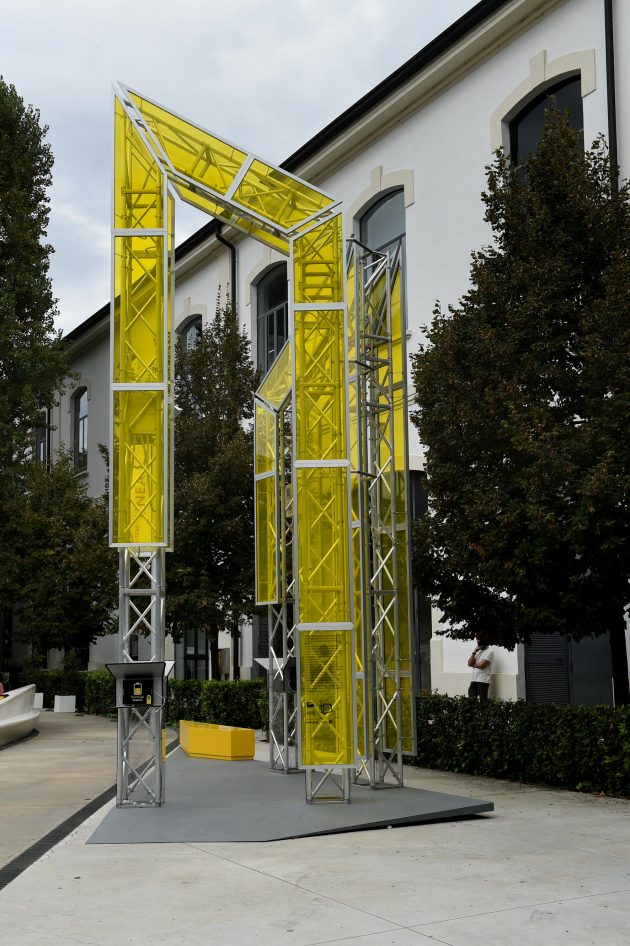 “Clima ed energia sono i grandi fattori su cui ci giochiamo il futuro”, si legge su un grande pannello. Anche la multinazionale degli idrocarburi sa che bisogna ripensare il consumo energetico, limitando gli sprechi e puntando sulle rinnovabili. La prova? L’installazione all’ingresso del MAXXI: una struttura gialla di con pannelli solari luminescenti (LSC) realizzati in un materiale plastico trasparente con dei pannelli fotovoltaici inseriti lungo i bordi, che catturano la luce e la convertono in energia elettrica. Una tecnologia sviluppata da Eni Ray Plus che promette di rendere “smart” le nostre finestre.