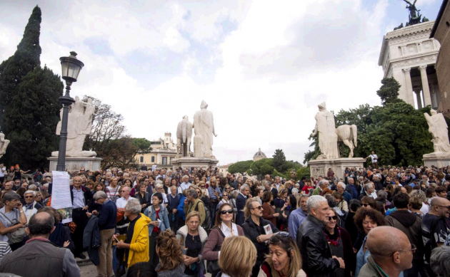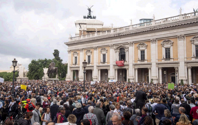 Numerosi i cori che chiedono le dimissioni della sindaca, alternati alle note di “Ricominciamo” di Adriano Pappalardo. “La piazza era strapiena, anche le scalinate. C’è stato un grande ricambio e stimiamo siano passate almeno 10mila persone – dice Emma Amiconi, una delle sei organizzatrici – Ci rivedremo sicuramente, non in un sit-in ma in un luogo al chiuso, dove ragionare, continuare a lavorare per la città facendo emergere il valore civico di tante esperienze e di tante persone. I cori rivolti alla Raggi? La piazza era composita, in questo momento lei è la sindaca e lei è responsabile dello stato delle cose”.