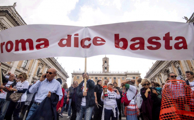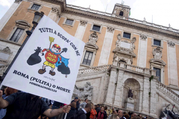 Roma dice basta“. Con questo slogan, lanciato sui social da sei donne autodefinitesi “cattive ragazze”, si sono riuniti in piazza del Campidoglio migliaia di romani in polemica con l’amministrazione di Virginia Raggi. Protestano contro la “grande monnezza“, le buche, la sporcizia, “l’abbandono della città”. “Vogliamo che Roma torni a essere una capitale: inclusiva, vivibile, accogliente, con un’idea di futuro”, spiega il comitato promotore. Il sit-in ha provocato un blocco del traffico nell’ora di punta, con le auto incolonnate fino a piazza Venezia. Numerosi i cartelli ironici: da “Il vento è cambiato e sa di monnezza” a “Raggi, una buca vi inghiottirà”e “Roma (pulita) o morte”. È comparsa anche una ramazza, accompagnata dalla scritta “Oggetto molto utile, forse ancora sconosciuto”. Al centro della protesta anche il tema della sicurezza: “Quante Desirée devono morire per vietare di bere in strada in tutta la città?”, si leggeva su un cartellone.