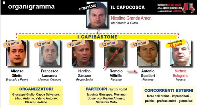 Ad attendere la sentenza di oggi sono i volti “presentabili” di questa consorteria, che secondo la Direzione Distrettuale Antimafia sono riusciti nel tempo ad entrare nei salotti buoni per ottenere favori e corsie preferenziali. Tra gli altri Giuseppe Iaquinta e il figlio Vincenzo, calciatore della nazionale; Alfonso Paolini, l’uomo mite che frequentava Silvio Berlusconi ed era di casa in Questura come amico e benefattore; Pasquale Brescia, titolare del maneggio abusivo dove amavano bazzicare imprenditori, poliziotti e carabinieri della provincia di Reggio Emilia.