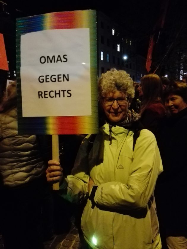In Germania l’Afd è in crescita, come risulta dalle recenti elezioni in Baviera (10,2%) e in Assia (13,1%). In particolare, dalle urne bavaresi il partito cristiano-sociale Csu, che governa la regione quasi ininterrottamente dal 1957, è uscito vincente, ma in declino (37,2%). I Verdi hanno fatto un balzo arrivando secondi (17,6%), ma rimangono all’opposizione, poiché la Csu si è alleata con i liberali di Freie Wähler (11,6%), mentre la Spd è crollata al 9,7%. La Baviera è uno dei Länder tedeschi più ricchi e Monaco è la terza città della Germania per numero di abitanti. Il capoluogo resta molto conservatore, eppure è una città ad altissima immigrazione, stratificatasi nei decenni. L’Afd avanza, ma forse non sono pochi i tedeschi che vogliano impedire che la destra razzista e populista domini il dibattito pubblico. Una signora brandisce il cartello Omas gegen rechts (Nonne contro la destra) e scandisce: “Siamo memori del passato nazista e non vogliamo andare verso l’estrema destra”.