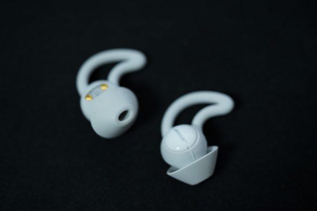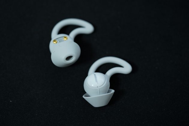 Per ricaricare gli auricolari basta riporli nella custodia con cui sono venduti. È realizzata in alluminio ed è compatta e bella da vedere, sul comodino starà benissimo. Un’operazione da fare solo la prima volta che userete gli Sleepbuds è scegliere con molta attenzione i gommini più adatti. Il produttore li ha progettati tenendo conto delle scansioni in 3D della geometria delle orecchie. Gli inserti sono forniti in tre misure (S/M/L) e sono battezzati “StayHear+ Sleep”. Sono molto piccoli, per questo alloggiano perfettamente nelle orecchie senza sporgere. Una volta indossati, il gommino in silicone va a chiudere il canale auricolare attenuando i rumori. Non importa se dormite proni, supini o su un fianco: gli auricolari rimarranno al loro posto.