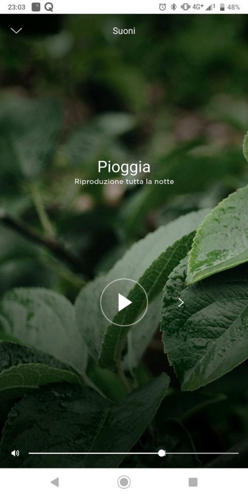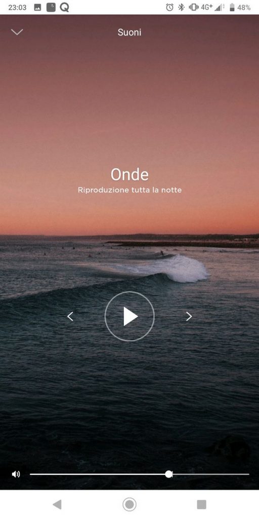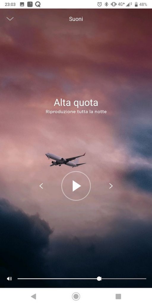 L’app è al centro di tutto. Si chiama Bose Sleep ed è disponibile sia per Android sia per iOS. Serve per scaricare gli aggiornamenti, per scegliere i suoni di sottofondo e per impostare la sveglia. Non spaventatevi se il download richiederà diverse ore: è un processo molto lento, perché le cuffie non comunicano costantemente con lo smartphone o altri dispostivi. I suoni sono memorizzati in locale così da evitare una connessione Bluetooth continua con lo smartphone.