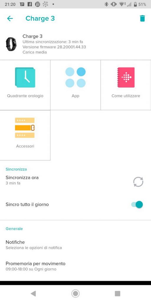 Chi usa Android potrebbe riscontrare saltuariamente alcuni problemi di connettività, che si manifestano in maniera del tutto casuale. Dovrete fronteggiarli, perché il Charge 3 è in grado di memorizzare le attività di 7 giorni nella memoria integrata, poi se non lo collegate allo smartphone andranno persi.