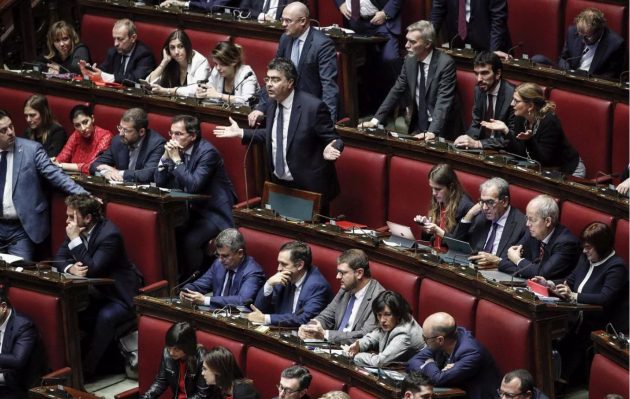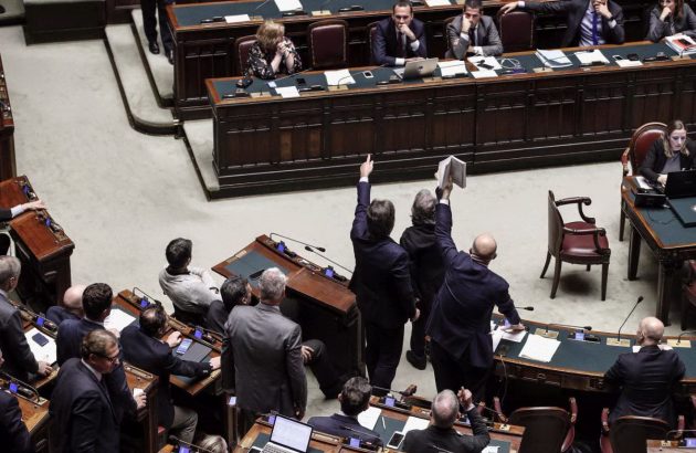 Caso in aula – Ma anche nel pomeriggio le opposizioni hanno chiesto di sospendere la seduta, visto che in programma c’erano una conferenza dei capigruppo e il question time. Le minoranze – Pd, Fratelli d’Italia e Forza Italia in testa – hanno contestato che in una situazione del genere l’esecutivo si sia precipitato in forze in Aula. “Dobbiamo fermare subito questo teatrino a cui stiamo assistendo ormai da ieri – dichiara dai banchi democratici Ettore Rosato – Serve che il governo riferisca su quello che sta succedendo dopo la bocciatura della manovra da parte della Commissione. Un teatrino straordinario“. La richiesta di sospensione di Guido Crosetto di Fratelli d’Italia – a cui si sono aggiunti Graziano Delrio per il Pd e Simone Baldelli di Forza Italia – è stata respinta per 101 voti. Ma è evidente che la tensione interna alla maggioranza si è proiettata sull’Aula. Emanuele Fiano, del Pd, ha accusato Conte di avergli fatto un gesto con il dito mentre stava intervenendo: “Se il presidente Conte con il suo gesto voleva dirmi ‘la aspetto fuori…’ vorrei che mi venga spiegato”. Mentre Fiano diceva questa frase, Conte ha fatto con la mano il gesto come a significare “ma che sta dicendo?”. Il premier, peraltro, dopo circa un’ora, è uscito dalla Camera mentre sono rimasti a Montecitorio (ma non in aula) Salvini e Di Maio.