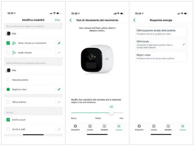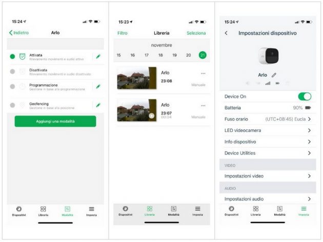 Un altro punto a favore di questa soluzione è l’app molto semplice da usare. Vi permette di vedere in diretta le immagini, avviare manualmente la registrazione, scattare una foto o aprire il canale audio per parlare attraverso la videocamera. Tutto con un ritardo nella trasmissione di circa 2 secondi. Potete decidere se la telecamera debba attivare la registrazione audio e video in caso di movimenti o rumori sospetti. Oppure definire l’arco temporale in cui la videocamera sarà “in ascolto”. La terza opzione è fare in modo che la videocamera si attivi da sola quando vi allontanate da casa. In quest’ultimo caso l’applicazione si appoggia al GPS del telefono, e quando rileva che siete fuori dal raggio d’azione predefinito, attiva Arlo.