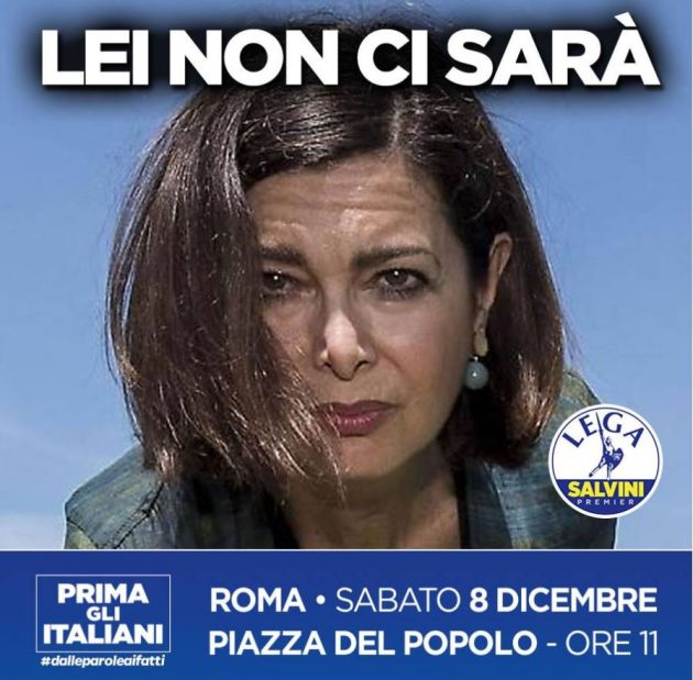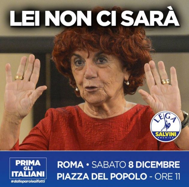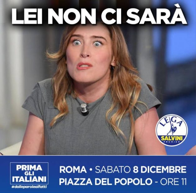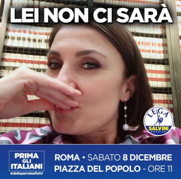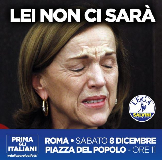 Politici, uomini e donne del mondo dello spettacolo e persino cantanti. Non manca (quasi) nessuno nel gruppo dei personaggi “esclusi” dalla manifestazione organizzata dalla Lega sabato 8 dicembre a Roma e lanciata sui social con la campagna “Lui/lei non ci sarà“. Una serie di foto, volutamente ironiche, condivise a mo’ di countdown sugli account ufficiali del Carroccio, che rappresentano gli ‘acerrimi’ nemici del partito. Un modo per tenere alta l’attenzione degli affezionati che il giorno dell’Immacolata saranno a Piazza Del Popolo, ma senza svelare chi prenderà parte all’evento. Unico invitato certo il Capitano, Matteo Salvini.