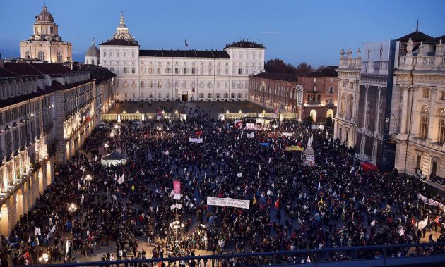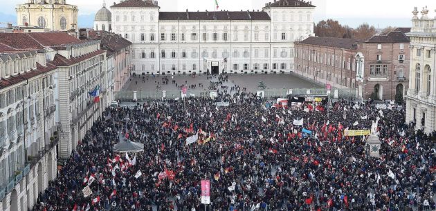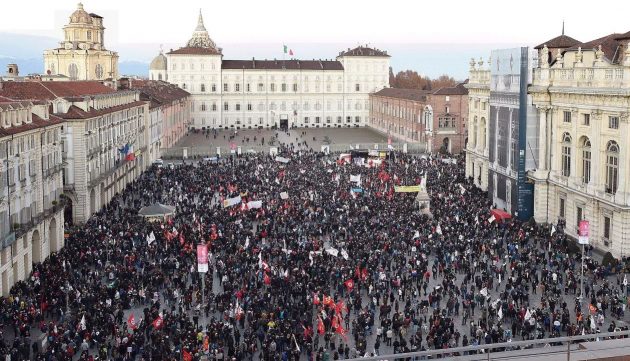 “Siamo in 100mila, grazie alle madamin” – Il leader No Tav Perino dal palco ha urlato “siamo in 100mila, ve ne rendete conto?”, mentre la testa del corteo con alle spalle una folta delegazione di sindaci in fascia tricolore entrava in piazza Castello. E poi le donne No Tav, gli studenti, i rappresentanti di numerosi comitati contro le grandi opere. “A sarà dura“, ha aggiunto Perino, scandendo lo storico slogan del movimento. La manifestazione “sta andando oltre le più rosee aspettative. Tanta gente No Tav che aveva perso la voglia e la grinta – ha continuato – si è sentita spronata dagli insulti delle madamin“. “Ci hanno lanciato la sfida e abbiamo vinto. In questa piazza vedo tanta normalità, ci sono moltissimi giovani e nessuno di chi ha manifestato oggi è stato precettato”, ha ribadito Lele Rizzo, leader del centro sociale Askatasuna.