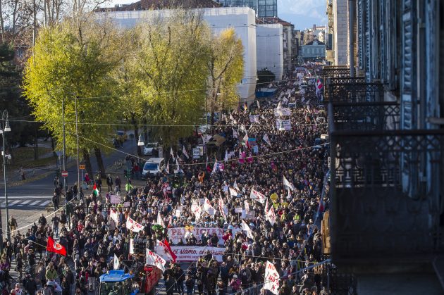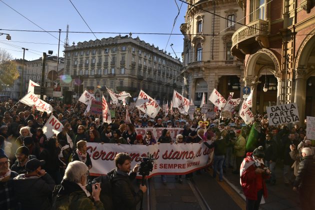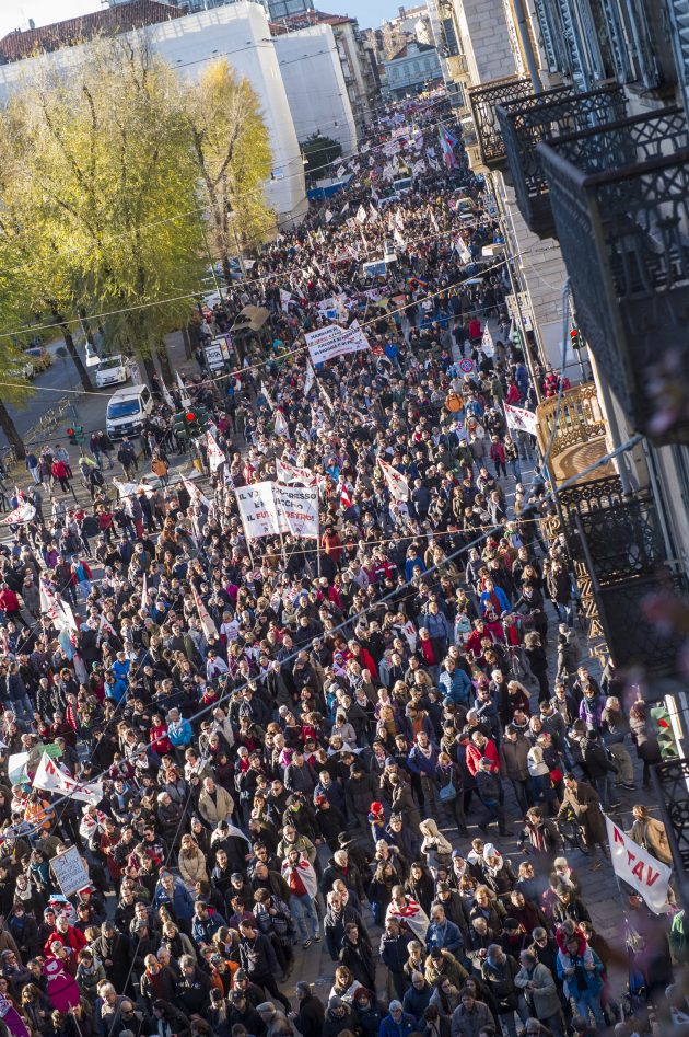 Un mese dopo la piazza del sì, la Tav torna a riempire le strade di Torino. Da piazza Statuto è partito il corteo del fronte del No che poi è confluito in piazza Castello. “C’eravamo, ci siamo, ci saremo! Ora e sempre No Tav”, è lo striscione che ha aperto la manifestazione contro la Torino-Lione. “Mentre la coda non è ancora partita, possiamo già dire che siamo 70mila e faremo i conti alla fine. Una marea No Tav”, scrivono gli organizzatori. I manifestanti sono invece circa 50mila secondo La Presse, mentre per la questura sarebbero non più di 20mila. All’iniziativa organizzata dai favorevoli all’Alta velocità il 10 novembre gli organizzatori avevano parlato di circa 30mila presenti, mentre per la questura erano 25mila.