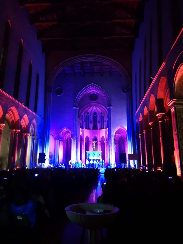 Il termine gospel, in inglese, significa Vangelo, buona novella, “parola di Dio” e mischia temi religiosi con le tecniche del blues e del jazz. Al quale aggiungere la densità emotiva di Pastor, un crescendo, la sua energia straripante. Canta, suda e si commuove. Dall’altare scende tra il pubblico per farci fare quattro salti. Una marea di selfie. Lo segue la corista dall’ imponente Lato B e poi un’altra ancora, un gruppetto di suorine si dondolano e battono le mani. Una gioia vederle. Sarà contento chi ha fatto una polemica dal niente, giusto per guadagnarsi un trafiletto di notorietà: “La chiesa non è uno stadio. Il Signore non apprezzerebbe che si promuovono spettacoli per ricchi”. Polemica inutile (e conosco un po’ la materia). I biglietti sono andati a ruba in poche ore. Ebbene sì, c’erano due tariffe, usando una metafora calcistica, c’erano biglietti da tribuna d’onore e da curva. La “tifoseria” ha comunque gradito e ha ballonzolato fino all’ultimo gorgheggio. Ancora un sospiro e Pastor, ormai senza voce, intona Silent Night, in un tripudio di candeline accesse e flashate di raggi laser. Unica colpa che si può imputare all’Associazione Vivere Napoli è che non ci sia stata una seconda replica.
