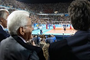 Sergio Mattarella alla partita inaugurale del mondiale di pallavolo maschile Italia vs Giappone
