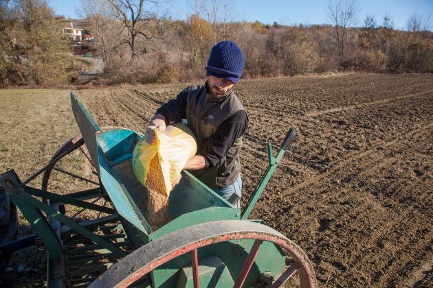 La giornata è strapiena: “Mi sveglio, do da mangiare a cani, gatti e galline, poi vado a lavorare come mediatore culturale. Ho bisogno di soldi per finanziare la mia azienda apistica e allora faccio il contadino pluriattivo”. Alla sera quando Emilio rientra si impegna a scrivere progetti, rispondere a bandi, districarsi tra i documenti: “La burocrazia in agricoltura è un problema e in più siamo in Italia – sorride. – Lo Stato non mi ha mai aiutato e in generale non aiuta chi vuole tornare alla terra. Ci sono finanziamenti di ‘primo insediamento’ per chi ha meno di 40 anni e apre una partita iva agricola, è vero: ma beneficiarne è difficile. Meglio cavarsela da soli, rimboccarsi le maniche e farne a meno”. Lavorare la terra per Emilio significa ascoltarla. “Se stai un anno in campagna ti accorgi molto di più di quanto sia pieno di sfumature il cambiamento dall’inverno all’estate e dall’estate all’inverno. Le mezze stagioni esistono ancora, eccome”, spiega.