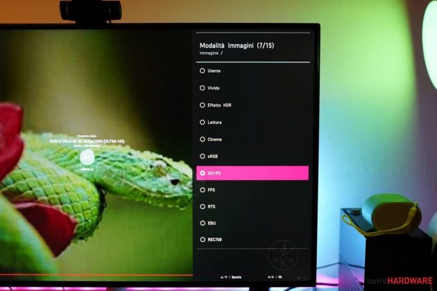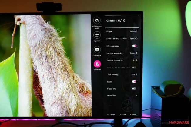 LG include nel suo menù diverse modalità di immagine, tra cui una completamente personalizzabile dall’utente, Vivid, DCI-P3, sRGB e tante altre. Abbiamo usato nella maggior parte del tempo le modalità Standard e DCI-P3, sicuramente le più fedeli da un punto di vista cromatico, mentre siamo rimasti sorpresi dal comportamento del monitor quando si attiva l’HDR dalle impostazioni di Windows. I colori non risultano falsati ed effettivamente la visione di contenuti 4K HDR su Youtube e Netflix gode di tali impostazioni, con gradazioni di colori e contrasti prodotti in maniera ottimale. La gestione del nero aiuta a non far perdere dettagli nelle zone più scure, mantenendo sempre un’ottima visibilità.