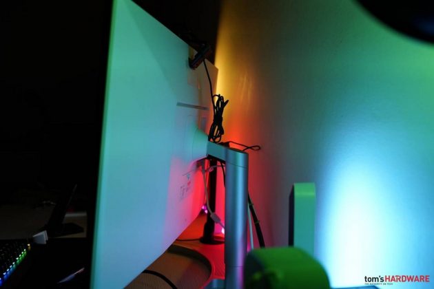 Rispetto ai predecessori, il 32UL950 presenta un design completamente rinnovato, con ingombro ridotto di 71,8 x 4,5 x 41,4 centimetri senza considerare lo stand. Il rivestimento sul retro è realizzato interamente in plastica con finitura opaca, che evita riflessi indesiderati. Oltre che sulla scrivania, può essere appeso al muro grazie all’attacco VESA. La parte anteriore è pulita, e una volta acceso colpiscono le cornici estremamente sottili su tutti e quattro i lati. Nella parte inferiore c’è il classico joystick che permette di gestire i menu e le impostazioni del monitor.