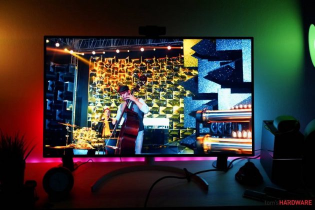La più che adeguata calibrazione di fabbrica e la copertura del 98% dello spazio colore DCI-P3, tornano poi molto utili quando si lavora a pieno schermo con programmi di foto e video editing. In entrambi i casi si può visualizzare la foto quasi nel pieno della sua risoluzione. Editando video a risoluzione nativa in 4K, si apprezza non solo la definizione e la gradazione cromatica eccellente, ma il poter avere a portata di mano tutti gli strumenti di correzione colore necessari per arrivare a un’immagine accurata. A tale caratteristica si aggiunge poi il Local Dimming, che si può anche disattivare a seconda delle preferenze, ma che quando attivo contribuisce a un controllo migliore della retroilluminazione, senza fughe di luce e un’immagine molto uniforme.