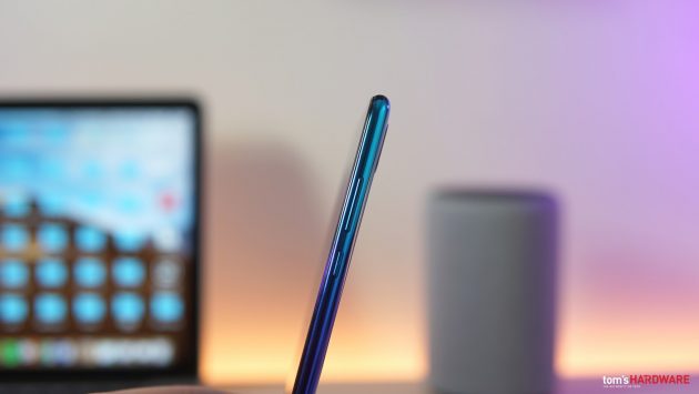 Nelle immagini di questa pagina c’è il modello in colorazione Aurora Blue, con un effetto sfumato di grande impatto. Gli angoli sono arrotondati e conferiscono una sensazione di continuità delle linee fra il rivestimento la parte frontale, dove troviamo cornici sottili (ma non tanto da causare selezioni indesiderate quando si maneggia il prodotto) e il notch superiore a goccia. Ricordiamo che il cosiddetto notch è l’inserto nella parte superiore dello schermo in cui alloggia la fotocamera frontale. A molti esteticamente non piace, Huawei ha pensato di mascherarlo con una forma a goccia che lo rende meno brutto e meno invasivo.