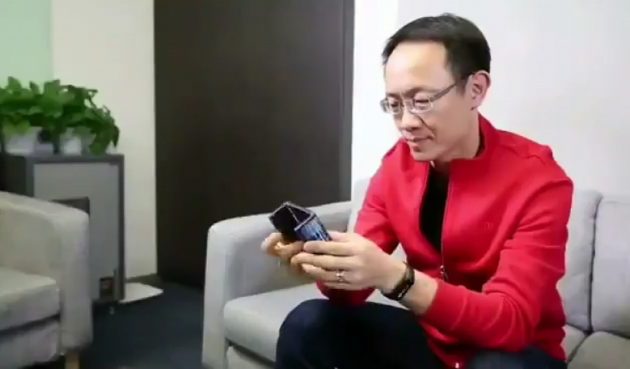 Il pulsante di accensione è collocato nella parte centrale superiore del lato lungo, così da averlo a portata di mano in entrambe le modalità d’uso. Non si vede alcun notch (la barra sulla parte alta dello schermo in cui alloggia la fotocamera frontale). Nel breve testo che accompagna il video, Lin Bin fa riferimento a cerniere pieghevoli a quattro vie, alla copertura flessibile per lo schermo, oltre allo schermo stesso che è pieghevole, e a un’interfaccia modificata ad hoc.