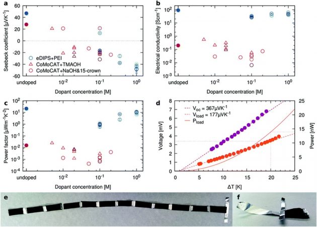 Come si potrebbe impiegare questo materiale all’atto pratico? Immaginate una situazione in cui l’Internet degli Oggetti sarà ormai consolidata. Saremo circondati da piccoli e grandi oggetti sempre accesi, all’interno dei quali ci sono circuiti elettrici che, per loro natura, producono calore. Con un materiale di questo tipo il calore si trasforma in una quantità di corrente sufficiente per alimentare, per esempio, sensori medici o sportivi. Se poi si riuscisse con il prosieguo della ricerca a ottimizzarne l’efficienza, si potrebbe persino pensare ad applicazioni come gli isolanti termici intelligenti, ricoprendo intere aree con il materiale flessibile.