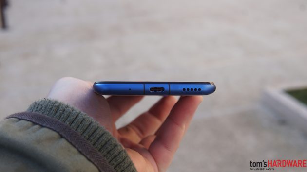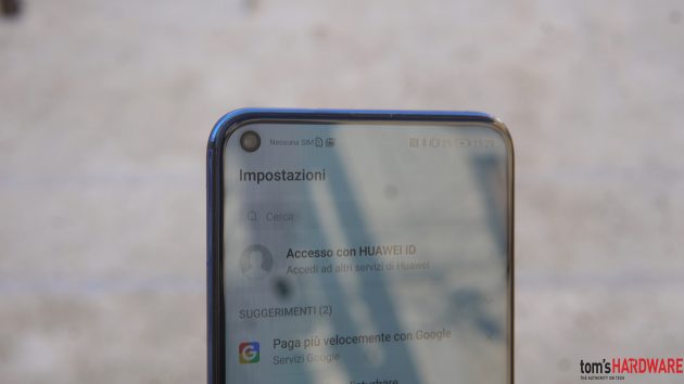 Esteticamente la novità che attira di più l’attenzione è la presenza di un foro nella parte in alto a sinistra dello schermo, dietro a cui alloggia la fotocamera frontale. È una soluzione che presto si diffonderà a macchia d’olio e che permette di fare a meno del notch, poco apprezzato dalla maggior parte degli utenti. Il rivestimento esterno è realizzato in vetro e metallo, con la trama a “V” sulla parte posteriore che avevamo già segnalato nell’anteprima: non è scivolosa e crea effetti di luce che piaceranno soprattutto al pubblico giovane. A mancare è l’assenza di certificazioni per l’impermeabilità, una caratteristica ormai presente in quasi tutti gli smartphone di fascia alta.