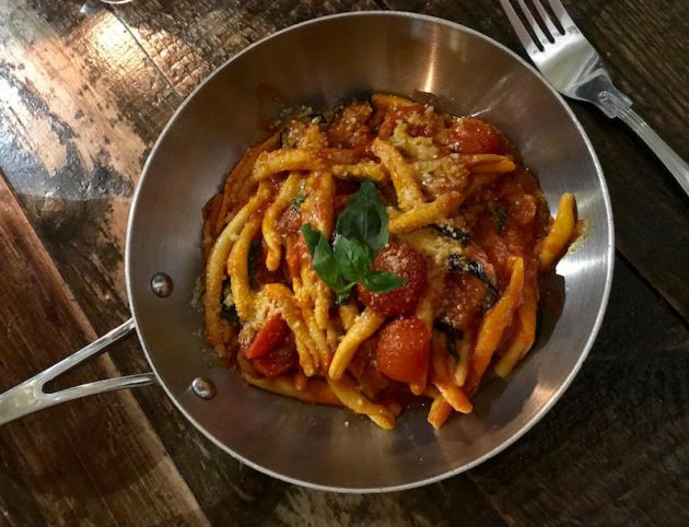 Così si sprigiona quell’alchimia spiegabilissima alle papille gustative, ma di origine subliminale ed extrasensoriale per mente e cuore, che riporta a sensazioni, ricordi, profumi e sapori che sanno semplicemente di casa. Tutto parte dalle materie prime, che sono rigorosamente importate dall’Italia, per essere utilizzate in ricette rustiche attraverso un impiattamento accattivante e contemporaneo, direttamente in tegami monoporzione.