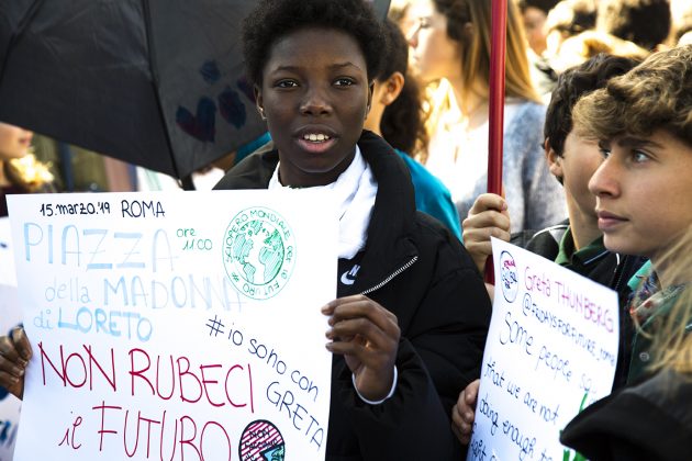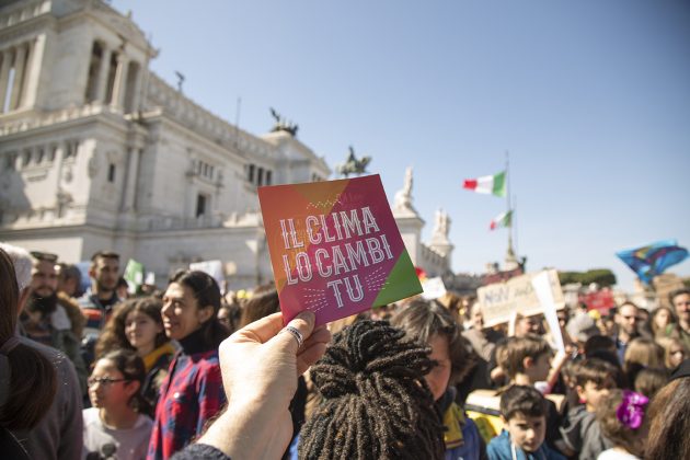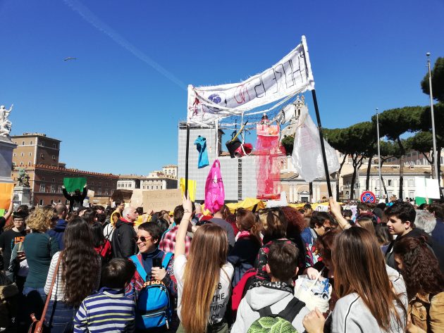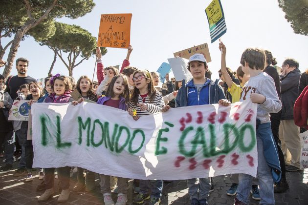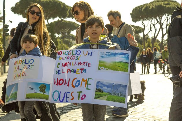 “Ho paura che la terra muore”. Francesco, sette anni, di origine indiane, parla con la voce bassa e gli occhi a terra. È venuto con la mamma Jenny, e ora affolla anche lui questa piazza di Roma ai piedi dei Fori imperiali, inondata di sole e di gente. Tanta, tantissima, molto più delle 5mila persone annunciate alla questura per la manifestazione Strike for Future in difesa dell’ambiente. Ci sono gruppi di adolescenti, classi scolastiche che arrivano cantando, uno sciame di ragazzi in bicicletta e poi, soprattutto, famiglie.