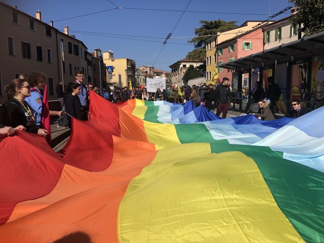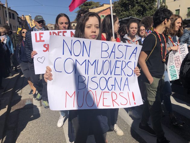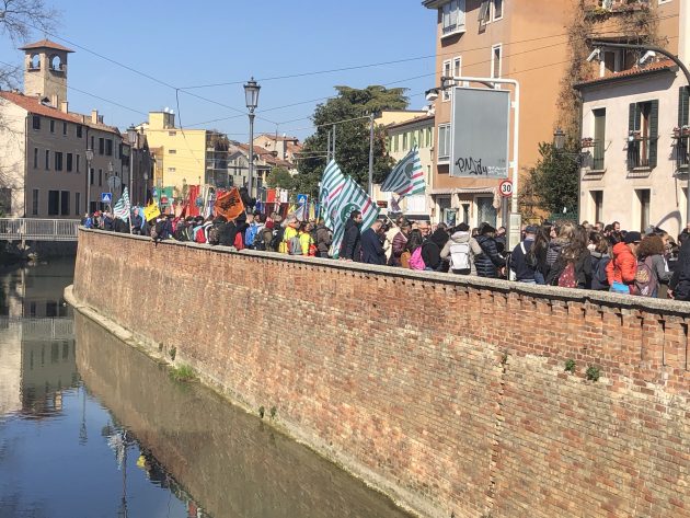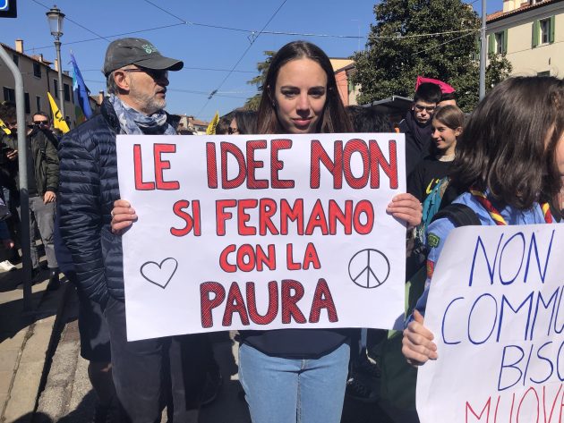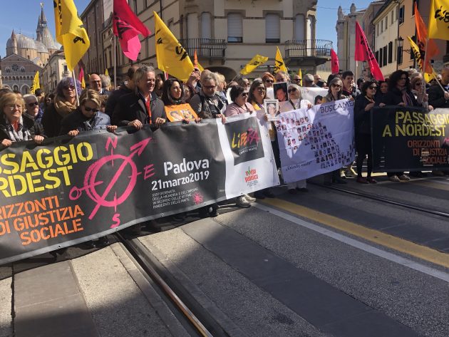 A stringersi attorno a loro, oggi, c’erano soprattutto i ragazzi delle scuole, gli scout, l’Azione Cattolica, i rappresentanti dei movimenti studenteschi. Giovani coscienti che la mafia ormai è arrivata anche al Nord Est. Lo sa bene Maria Chiara, 16 anni, scout: “Nei mesi scorsi siamo andati ad un incontro con don Ciotti e crediamo a questa iniziativa. A Padova c’è la mafia ma non si vede. Fa più paura quando non si può guardare negli occhi”. Un parere condiviso da Leonardo che sventola una bandiera della pace lunga decine di metri: “Sono arrivato da Pieve di Sacco con la mia scuola, la ‘Enrico de Nicola’. La nostra professoressa nelle scorse settimane ha fatto un percorso sul tema e oggi siamo qui per manifestare contro uno dei mali di questo Paese, di tutta l’Italia, Veneto compreso”.