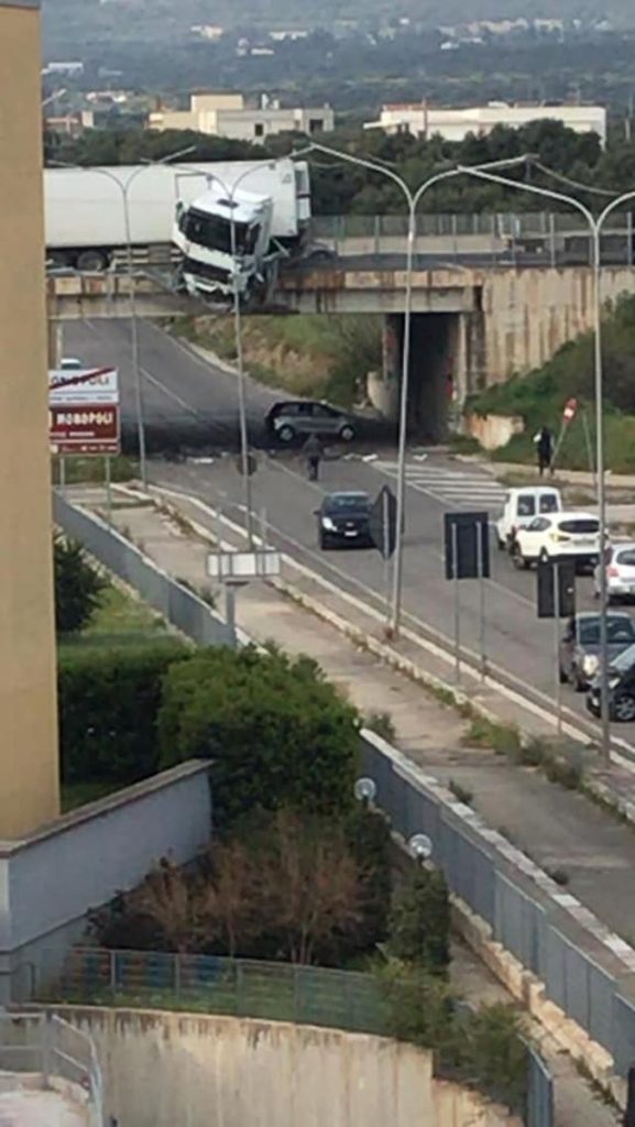 del camion è rimasto in asse sulla strada, mentre la motrice ha sfondato il guardrail ed è rimasta in equilibrio, agganciata al carico. Il conducente, che ha riportato solo un lieve trauma cranico, è riuscito ad abbandonare il mezzo: sarà sottoposto ad alcuni esami di rito, tra cui la ricerca di presenza di alcol o droghe nel sangue. Sul posto sono arrivati i vigili del fuoco, una gru da Brindisi per il recupero del mezzo, un elicottero e un’ambulanza del 118. Sull’incidente indaga la Polizia stradale.