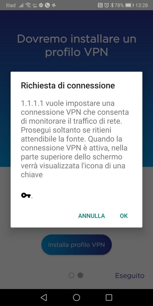 Non serve impostare parametri di rete, padroneggiare sigle strane o altro: basta aprire l’app e autorizzare il dirottamento del traffico. Come si vede nelle immagini che abbiamo catturato, in alto compare una chiave, che indica che la VPN è attiva. A questo punto qualsiasi indirizzo Internet digitiate il traffico è protetto e i contenuti in streaming accessibili. È veloce, e soprattutto è di qualità garantita. Un aspetto non da poco, considerato che la maggior parte dei servizi VPN gratuiti che si trovano online sono spesso poco sicuri.