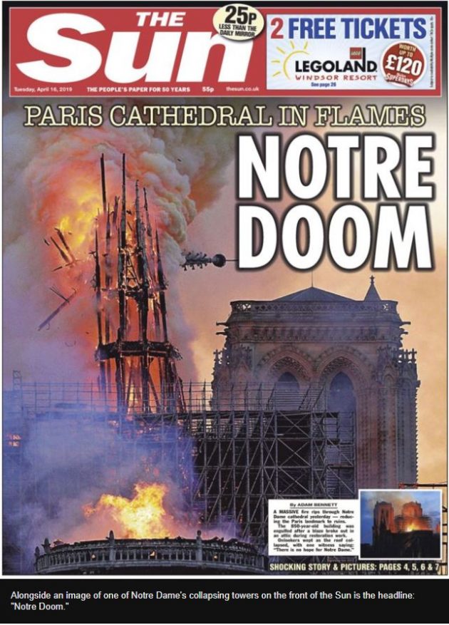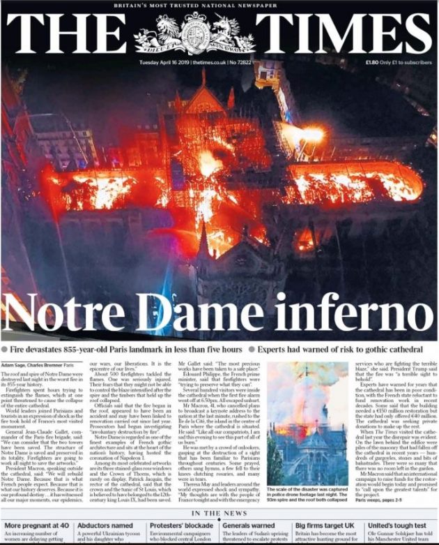Incendio di Notre Dame, la notizia sulle prime pagine dei giornali di tutto il mondo
