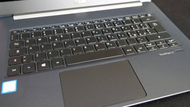 Sul fronte del design, il Travelmate X5 di Acer è un prodotto che pesa 980 grammi, è rivestito in lega di magnesio e ha uno spessore massimo di 14,9 millimetri. Le dimensioni principali sono date dallo schermo da 14 pollici, che non ha permesso di installare una tastiera con tastierino numerico a parte. È compatta ma comoda, con la retroilluminazione bianca che si può attivare manualmente quando serve. I tasti sono a isola con una corsa ridotta, silenziosi e disposti in modo adeguato, con il giusto spazio.