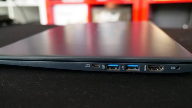 La connettività, che di solito sui modelli ultrasottili richiede qualche compromesso, soddisfa grazie alla presenza di due connettori USB 3.0 e uno USB di Tipo C, oltre all’uscita video HDMI e alle prese jack per l’alimentazione e per le cuffie audio. La qualità dei suoni in cuffia è migliore di quella degli altoparlanti integrati, che è giusto accettabile per l’uso professionale.