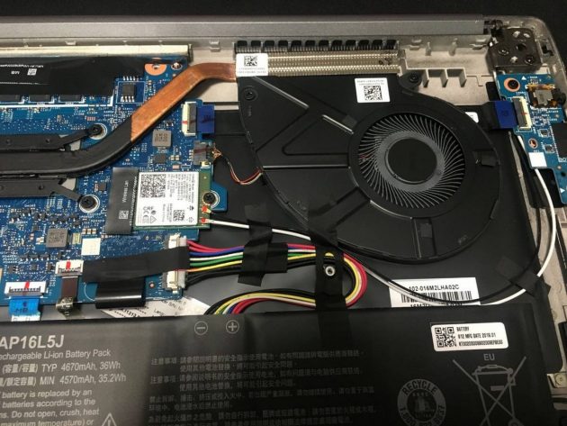 Il calore prodotto dai componenti interni viene espulso tramite tre griglie nella parte inferiore della base: è consigliabile non ostruirle tenendo il portatile appoggiato sulle gambe, soprattutto in estate. Le ventole per la circolazione dell’aria sono silenziose e sortiscono l’effetto desiderato, visto che la tastiera è abbastanza fresca.