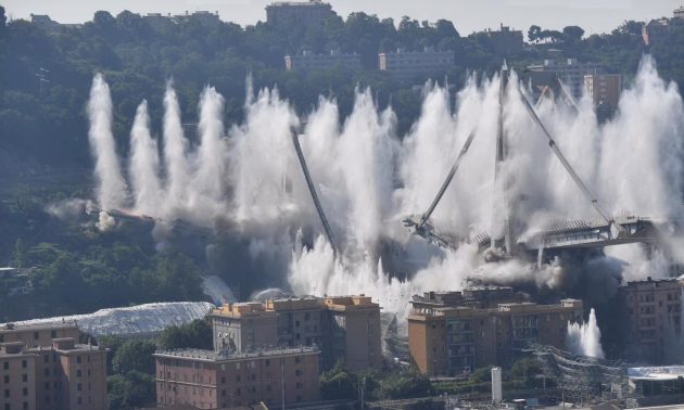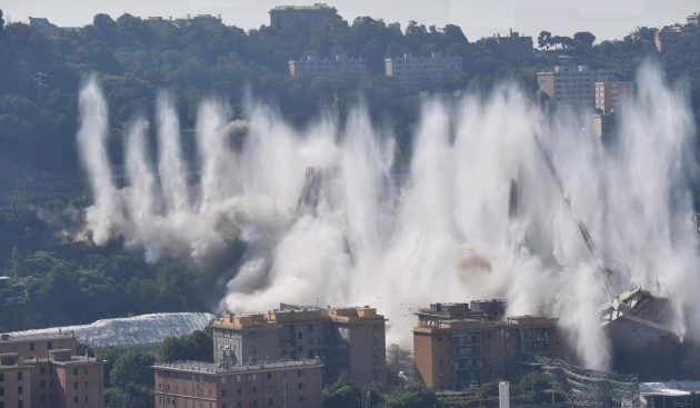Ponte Morandi, abbattuti resti struttura dopo l’evacuazione di 3.400 residenti. Salvini: “Prossimo anno nuovo viadotto”
