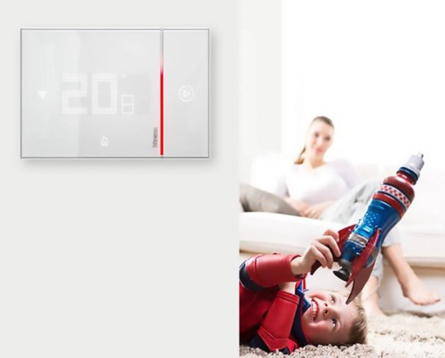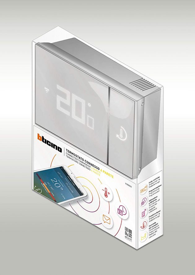 Questo dispositivo serve per la gestione smart del clima domestico, con strumenti quali i programmi personalizzati che promettono di mediare fra comodità e risparmio energetico. L’integrazione negli ambienti è assicurata da una colorazione bianca con effetto vetro che non stona sia con arredamenti classici sia con quelli ultramoderni, e lo schermo con le scritte in trasparenza è ben leggibile ma discreto.