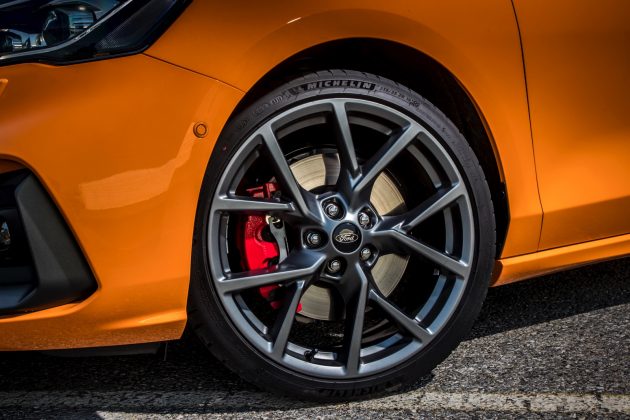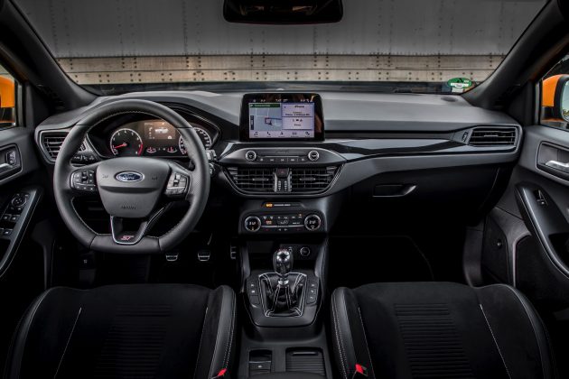 Lunga 440 cm, larga 184 e alta 147 cm, con un peso a vuoto di 1.508 kg, ha un look niente affatto stravolto da cerchi in lega di grandi dimensioni o dai giusti interventi aerodinamici sul frontale, da parafanghi più pronunciati o dallo spoiler posteriore. La ST resta un Focus nelle sue linee pulite che oggettivamente richiamano compatte sportive di ben altro prezzo. Siamo a quota 37.850 euro, ma in ballo non ci sono solo le doti di grinta, quanto piuttosto la formula di sportività concreta senza esibizioni. Possiamo dire che Focus ST è una vettura lussuosa, ma spieghiamo anche il perché. Ford Performance non è una targhetta decorativa in plastica, ma una divisione che sviluppa oggetti meccanici di prestigio, come la coupé Mustang o il pickup Ranger Raptor. Dunque l’idea non è quella della elaborazione a colpi di derapate e alettoni, ma casomai quella di una vera evoluzione meccanica, aggiungendo prestazioni.