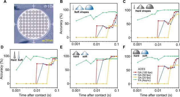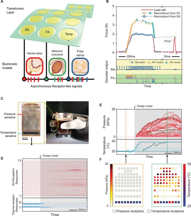 Nel corso dei test di laboratorio i ricercatori hanno usato prototipi con un massimo di 240 meccanorecettori artificiali che trasmettevano eventi in modo asincrono a una latenza costante di 1 millisecondo, mantenendo una precisione temporale inferiore a 60 nanosecondi. Tee e colleghi stimano che la piattaforma ACES possa essere integrata con una vasta gamma di sensori, Intelligenze Artificiali artificiale, neuroprostetici e dispositivi neuromorfici per la manipolazione di oggetti e la percezione somatosensoriale.